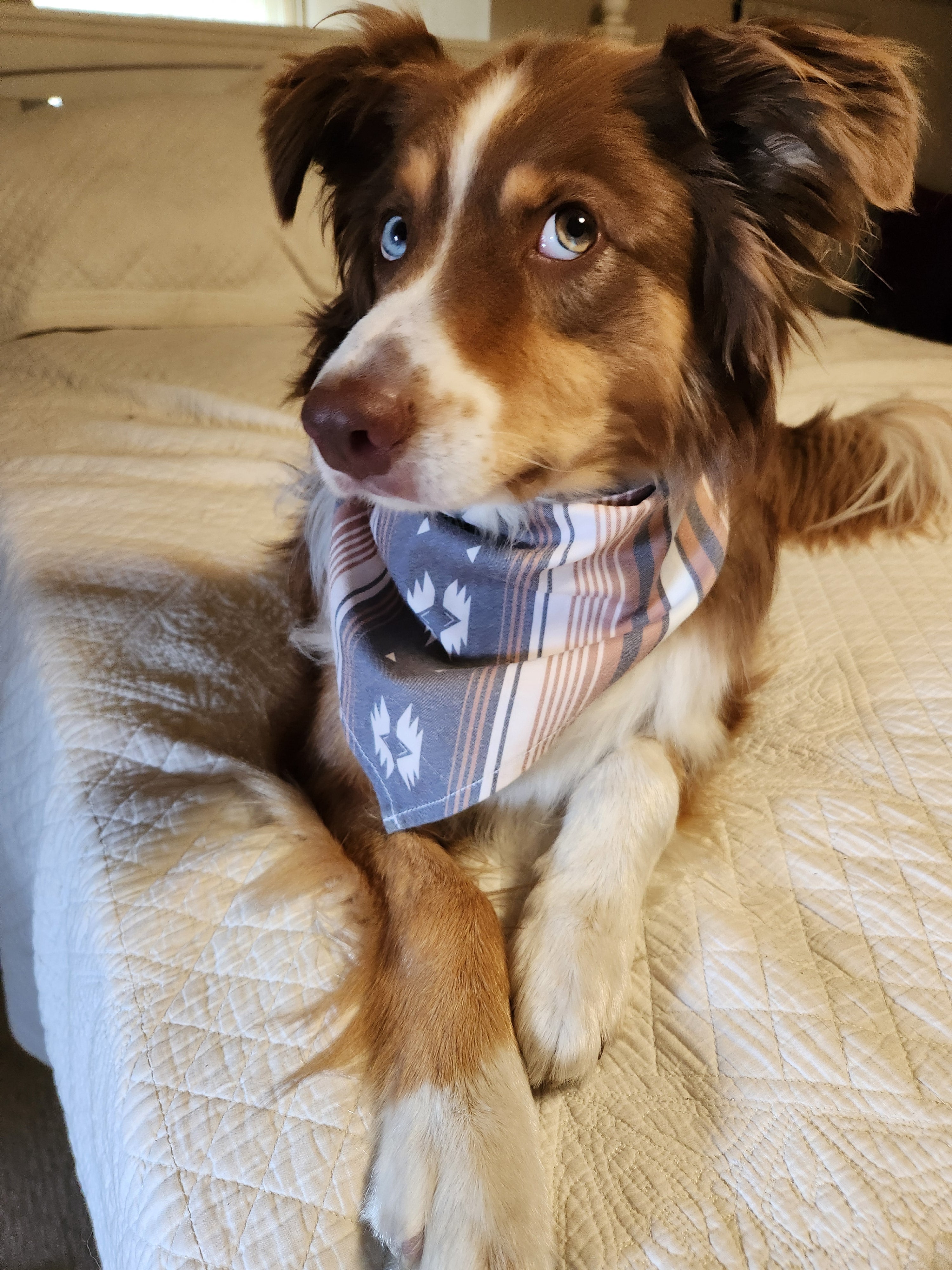 Confectionné en sergé de coton de première qualité, ce bandana facile d'entretien arbore un imprimé audacieux d'inspiration Navaro qui rehausse n'importe quel look tout en aidant à garder la fourrure propre et soignée.